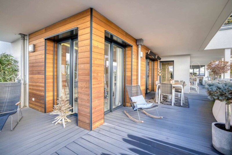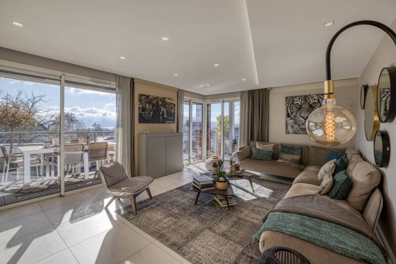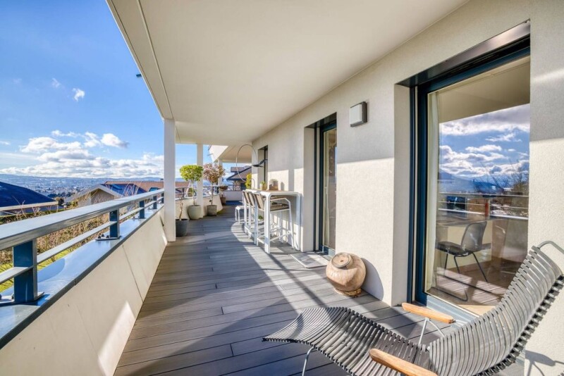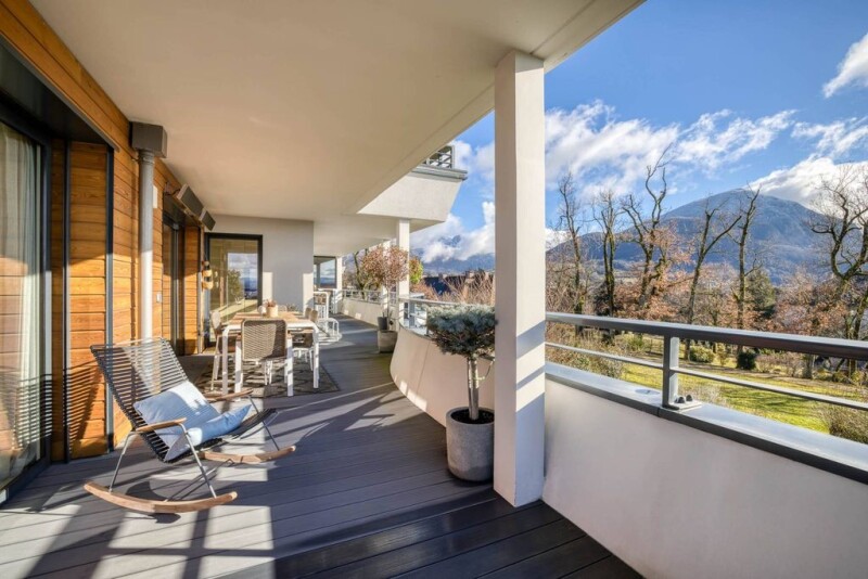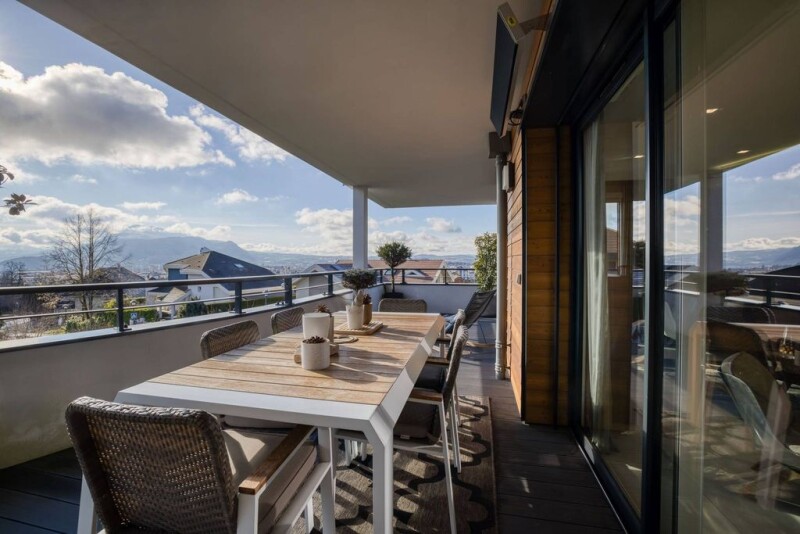 ANNECY SOTHEBY'S INTERNATIONAL REALTY presents an exceptional flat, completely renovated and designed by a renowned architect, using quality materials. It is located in a sought-after, sought-after area of Annecy-le-Vieux. The flat comprises an entrance hall, a spacious living room with an open-plan kitchen, all opening onto a large 52 m² terrace with magnificent views of the lake, mountains and the town of Annecy. It also includes 4 bedrooms, including a master suite with en suite shower room, as well as a bathroom, dressing room and utility room. There is also a cellar and a double garage, with the option of purchasing a single garage in addition. The flat enjoys an exceptional location in the heart of wooded parkland. ANNECY SOTHEBY'S INTERNATIONAL REALTY, votre expert dans la vente et la location de propriétés de luxe sur le bassin Annécien et les Aravis.