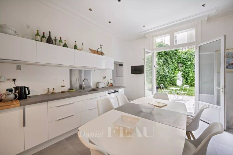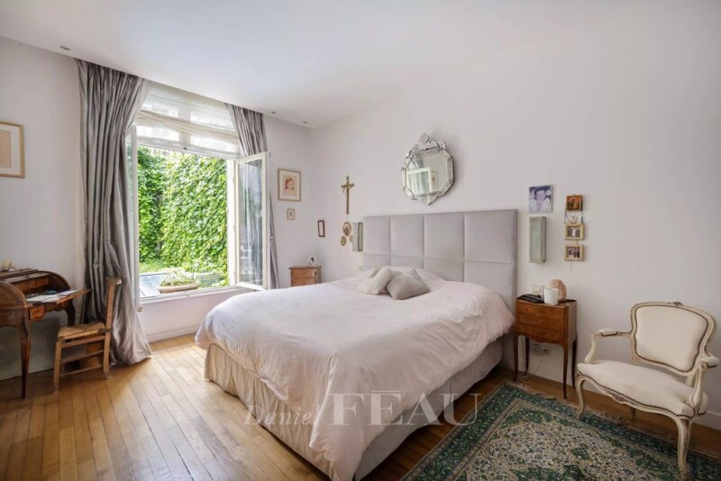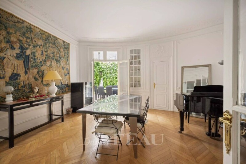 Foch. This apartment in an early 20th century building benefits from a peaceful private garden. An entrance hall leads to a living/reception room with a fireplace, a dining room, a kitchen with dining facilities, a master suite with a bathroom and dressing room, and a second bedroom with a shower room. The basement includes an apartment comprising a main room with a skylight, an open-plan kitchen, a bedroom with a walk-in wardrobe, and a shower room. With a fitted maid’s bedroom on the 6th floor benefiting from lift access, and a cellar.