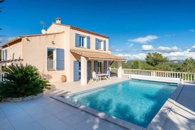 In a dominant position, this magnificent residence extends over a plot of around 1,257 m2, offering uninterrupted views of Mont Sainte-Victoire and the Sainte-Baume mountains. Built in 1984 and completely renovated in 2018 with the help of Hegenbart joinery, a renowned specialist in contemporary made-to-measure furniture, the house spans around 180 m2. Each room is decorated with top-quality materials, creating an elegant, refined setting. Outside, you'll find a 10x5 metre saltwater swimming pool, heated and protected by an electric shutter, as well as a summer kitchen with barbecue. The entrance hall opens onto a large, light-filled living room with direct access to the south-facing terrace and pool. The open-plan, fully-equipped kitchen has large windows offering uninterrupted views. This level also includes a guest toilet with washbasin. A superb wooden staircase leads up to the middle floor, where there are two bedrooms with bespoke fitted wardrobes and a shower room with toilet. Two further bedrooms have walk-in wardrobes with integrated light fittings, carefully designed by the designer. A luxurious bathroom with whirlpool bath, shower and separate toilet. The garden level includes a laundry room and a large additional room with magnificent bespoke wooden cupboards. The grounds offer optimum exposure and absolute tranquillity, in a very pleasant setting. The property also has plenty of parking and is ideally located, close to the shops. Open the door and let yourself be seduced by this elegant home.