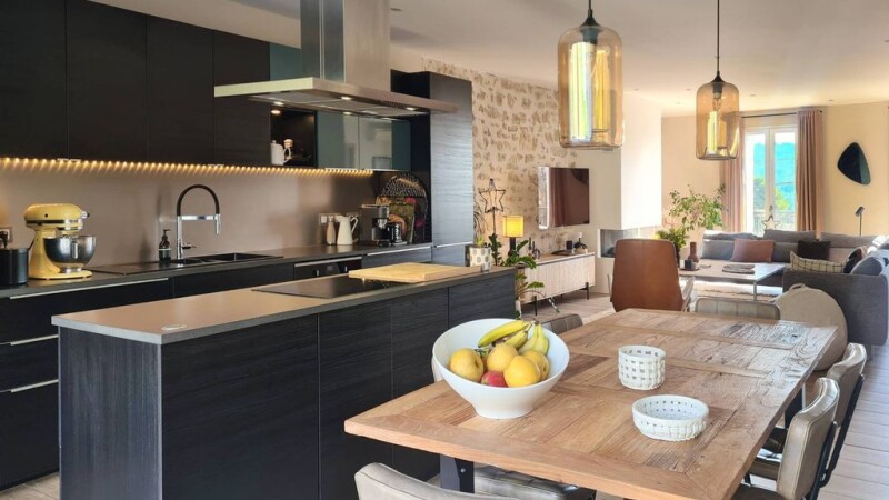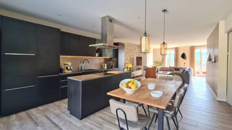 Located in the charming historic center of Uzes, this magnificent property offers an ideal living environment, just a five-minute walk from the famous Place aux Herbes and one minute from the Eure Valley. The property consists of a warm family home (5 bedrooms) and a guest house (2 bedrooms), all nestled in a wooded garden with a superb heated 2m x 8m Roman-style swimming pool. The house combines the charm of local architecture with exposed stone, a travertine terrace and the modernity of large openings to let in light from both sides. The houses are air-conditioned. The main house includes, on the ground floor, a large living room of 60 m2 including a lounge, a living room and an open kitchen, perfect for entertaining your guests. A gas fireplace adorns the living room. The space is completed by two bedrooms, a bathroom and a toilet. Upstairs, you will find three bedrooms, two of which have private bathrooms, as well as two toilets and a large dressing room. Large garage of 60 m2. Concerning the guest house, ideal for welcoming your guests, this independent part offers two bedrooms, a shower room with toilet, a kitchen and a living room, all opening onto a private shaded terrace. Other information: Two independent entrances offer the possibility of renting all or part of the property on a seasonal basis, which makes it an interesting investment. A professional premises can be rented as an option. For more information, please contact us today.