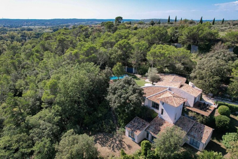 Uzes in the heart of nature, 750 metres from the historic centre, 242 m2 property with breathtaking panoramic views. Living rooms opening onto terrace, garden and pool. A total of 4 bedrooms and 3 bathrooms. set in 5,075 m2 of parkland with beautiful pool area, peaceful forest location with no nuisances. This exceptional property is set in beautiful natural surroundings, 750 metres from the historic centre of Uzes. Ideally positioned on its hillside plot, opening onto a natural setting enhanced by century-old trees and breathtaking views of the iconic buildings of Uzes, this property is exceptionally well-designed and fluid. Conceived as a flat opening onto nature, the property's ground floor spans 163 m2 and offers some very attractive reception rooms: the 55 m2 double living room is distributed by an entrance hall and features a fireplace. On one side, it opens onto the terrace and pool area, and on the other, onto the terrace facing the Cathedral of Saint Theodorit and its famous Fenestrelle Tower, as well as the Duchy's Towers. This unique living space communicates with the dining room and the fitted kitchen. A hallway leads to the property's master suite. Facing the valley, it offers great privacy and perfect serenity. Its 55 m2 are laid out as a vast bedroom, dressing room and bathroom (bath, Italian shower, double washbasin and vanity unit). The garden level, accessed via a wide stairwell, is pleasantly distributed by a cosy lounge: 3 spacious bedrooms (15, 16 and 17 m2) share 2 bathrooms (shower and washbasin, with separate toilet), and also feature a corner kitchenette. Each of these rooms also has its own independent access from the garden. The 5,075 m2 of grounds are divided into several areas, including a very attractive swimming pool area in front of the property (4 x 10 m, d = 1.3 m, salt filtration with automatic PH, underwater roller shutter, heated by heat pump, storage area) surrounded by a beautiful lawn and opening onto the superb views afforded by the property's geographical location. Slightly below, a first garden surrounds the guest bedrooms and leads via a small pathway to part of the park, shaded by white oak trees and surrounded by terraced walls. This unique property is free from nuisance and offers an idyllic living environment, with minimal maintenance of the outside areas. Contact us today to discover more.