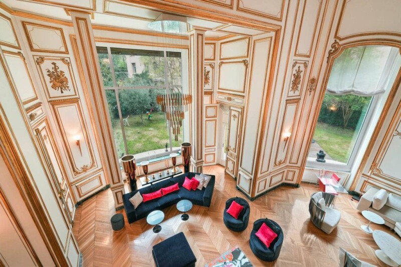 This exceptional 549 sqm split-level apartment benefiting from a 420 sqm garden is in a prestigious 1930’s Walter building. The garden level includes a spacious living/reception room bathed in sunshine and opening onto the garden, a drawing room, a dining room, a kitchen with a cold-room, a bedroom with a bathroom, a study and a fitness room. The upper floor comprises four bedrooms with bathrooms including a master suite. With a sauna and a hammam. Beautiful features include marble floor surfaces, panelling, Herringbone parquet flooring and gilded mouldings. With two maid’s bedrooms, a lock-up garage and a wine cellar. A magnificent apartment near the shops, the schools and the transport networks. État des risques et pollution: réalisé (null).