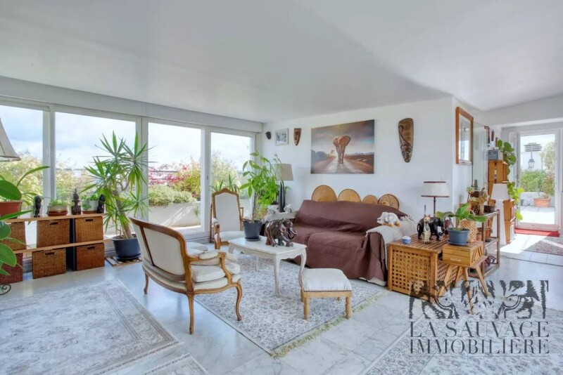 In an exceptional setting in the heart of Asnières close to the town hall and the charming square Maréchal Leclerc imagine yourself on an exceptional private terrace of 163 m2 perched on the top floor offering a breathtaking panoramic view over the roofs of Asnières and the Défense. This true green oasis in the heart of the city is the major asset of this duplex of 253 m2 where every corner has been designed to fully enjoy the light and outdoor space. Located on the 4th and 5th floors of a contemporary building whose elevator leads directly into the apartment this rare property is distinguished by its calm and brightness. From the entrance a spacious gallery invites you to discover a large double living room facing south-west with 4 balconies of 6.5m2 each offering an open view. A small living room a dining room and a large kitchen offer you friendly and warm living spaces perfect for moments with family or friends. The duplex has four comfortable bedrooms a dressing room a bathroom and a shower room. On the upper floor a bright winter living room leads to a fifth bedroom right next to the spectacular rooftop terrace. This outdoor space true refuge in the sky also benefiting from a kitchen area is ideal to relax or organize memorable evenings while enjoying the calm and breathtaking view. This property at the same time functional and welcoming also includes two large boxes and a cellar ensuring all the comfort necessary for everyday life. A rare opportunity not to be missed for those looking for a unique space where you can live fully in the city while enjoying a large outdoor. Metro Line 13 "Gabriel Péri" located 700m walk. Transilien lines J and L and RER C. Subject to the status of co-ownership. No ongoing proceedings. Lot Reference: 51 - Box: 36-37 - Cellar: 33 - Premises: 34 Co-ownership: 10 lots Information on the risks to which this property is exposed is available on the Georisques website: www.georisques.gouv.fr Visits and information 7d/7 Agency fees charged to the seller. État des risques et pollution: réalisé (null).