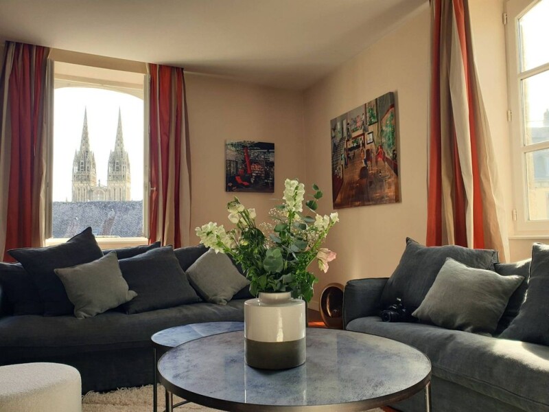 If living in Hyper-centre (Quimper) appeals to you, this sizeable apartment built in 1830, is a fantastic opportunity, now for sale. Check out this property's great amenities and 153 sq. m of living space on the two ème as well as impressive views over a monument. Lovely views of a monument are a real asset. The property is a short distance from a train station, the city center, the high street and a bus station, situated in a nice neighborhood. A dining room, three bedrooms, two shower rooms, two separate toilets and a kitchen can be found in the flat, spread across two floors. It has five rooms in total.