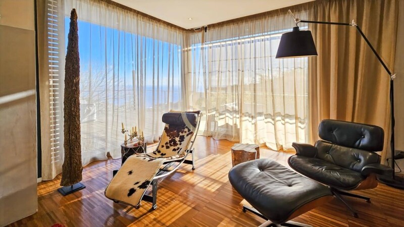 Your Century21 Dary Immobilier agency exclusively offers you this magnificent contemporary villa on the heights of Bastia. This 154 m² property is built on a plot of approximately 1000 m². It features a garden, a summer kitchen area, a jacuzzi, terraces, and a large cellar. The villa is located in a prime, quiet location with a beautiful sea view. Although close to Bastia city center, it is not overlooked by neighboring homes. Perfectly integrated into its environment, it was designed as a "treehouse." The suspended terraces overlook the sea and the tops of the chestnut trees. The vegetation is an integral part of the architectural project. Built in 2009, it was entirely designed by an architect couple, in its design and interior decoration. Everything was custom-designed and built. A perfect blend of functionality and aesthetics. It consists of an entrance hall, a WC with vestibule and washbasin, a laundry room. The kitchen area has a back kitchen and a removable wall made of solid oak and transparent panels to separate, if necessary, the kitchen area from the living room. The living room has a modern fireplace, angled bay windows and terraces. The master suite with dressing room and shower room and WC completes this floor. On the garden level, you will find a large bedroom which today serves as an office, a linen room, a third bedroom with private dressing room, an office, a bathroom and a second guest WC. All living rooms have direct access to the exterior. This villa is surprising. A successful architectural project where quality materials are rarely so sublimated. All the interior woodwork is the work of a cabinetmaker, each cupboard, each door, the monumental staircase in solid oak, are the most remarkable examples. Additional features: reversible ducted air conditioning, solar panels for hot water production, green roof, double wall insulation for optimal quality of life and comfort. Electric gate, central vacuum system. A rare product on the market.