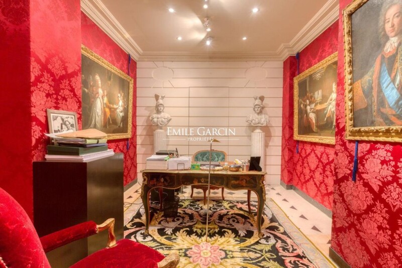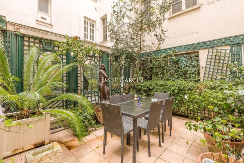 UNIQUE AND EXCEPTIONAL. Overlooking a beautiful leafy courtyard behind a hidden independent entrance on the Rue de Rivoli, facing the Jardin des Tuileries and a stone's throw from Place Vendôme, this elegant reception apartment presents 297.92 sq.m of living area and a 28 sq.m terrace. Spread over three main levels connected by a majestic staircase and a private elevator, the property boasts an 18th century decor entirely recreated by decorator Didier Rabes using materials of the highest quality (woodwork, mirrors, stucco, doors enhanced with 18th century decorations, marble and artistic ironwork, herringbone parquet flooring), the perfect blend of refinement and modern comfort. On the ground floor, you will find the entrance and its vestibule, a replica of Nicolas Ledoux's Café Militaire on rue Saint Honoré (whose original doors are today preserved at the Carnavalet Museum), which leads to a wood-panelled living room, a home office, a dining room, a library and a guest WC. On the mezzanine floor (backing onto a 28 sq.m terrace), there are two large suites, each with a dressing room and bathroom/WC. The top floor is made up of a 30 sq.m apartment in a contemporary style which can be separated from the rest of the property, comprising living room/kitchen, bedroom and bathroom/WC. On the lower level, there is a large kitchen-diner, a laundry room, a service bedroom and a WC. Sold with a large cellar. A unique and exceptional residence, idyllically located opposite the Tuileries, which will appeal to lovers of 18th century aesthetics.