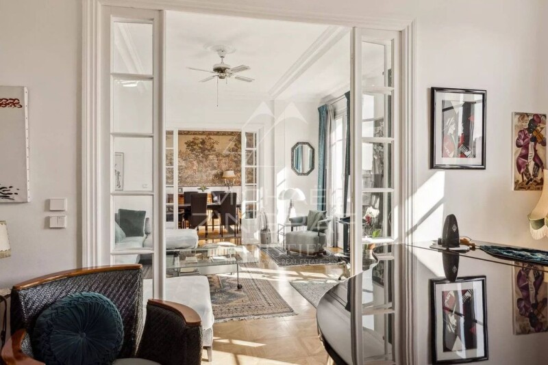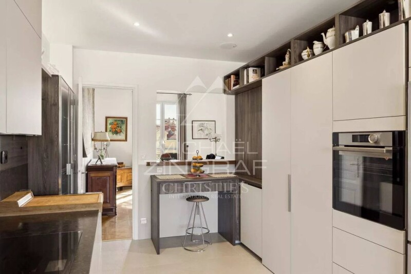 Michaël ZINGRAF Real Estate Nice presents this splendid 220 sqm apartment, located on the top floor with an elevator, featuring 35 sqm of enclosed verandas (formerly an open-air terrace) in a magnificent Art Deco building in the heart of Nice. With its authentic high ceilings adorned with moldings and Versailles parquet flooring, this exceptional property—solely occupying the entire floor—offers a beautiful entrance, a unique triple reception area of 63.33 sqm facing south, bathing the space in natural light. The spacious kitchen of over 17.03 sqm, recently renovated with taste, opens onto the veranda with a stunning unobstructed view. The apartment includes four beautiful bedrooms, one of which is 21.70 sqm with its own bathroom, and another opening onto the largest veranda of 19.40 sqm, offering a breathtaking view of the mountains. A dressing room, a second bathroom, and two guest toilets with washbasins complete the layout. Ample storage throughout. This property is in perfect condition, renovated with great respect for its history, and benefits from a prime location close to Nice’s most iconic landmarks, including the Promenade des Anglais and the famous Negresco Hotel. A service room, a cellar, and a spacious ground-level closed garage complete this magnificent apartment. État des risques et pollution: réalisé (null).