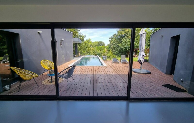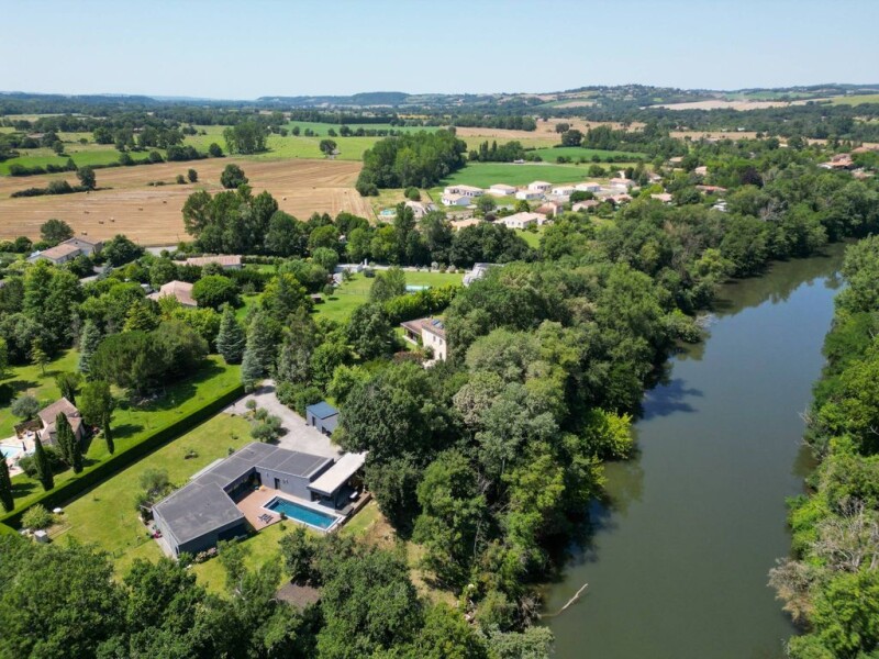 Close to a village and hidden at the end of a cul-de-sac, let yourself be surprised by this contemporary single-storey house built in 2013 by DPLG architect's design. With around 200m² of living space, all living and sleeping areas face outwards. The large living room and open-plan fitted and equipped kitchen benefit from a double south/west/north/east exposure, with bay windows opening onto two spacious terraces. An office, a storeroom, a cinema room, 4 bedrooms (2 of which are en suite), a dressing room, a bathroom, 2 shower rooms and three toilets complete the house's living space. Outside, the mineral swimming pool integrated into the wooden terrace, the jacuzzi and the covered terrace give the eye the freedom to glimpse the river below. A gazebo has also been created for cosy family evenings, with access to the river. A lean-to, a workshop and a large courtyard complete the property. You'll be seduced by this welcoming, pleasant, convivial and luminous property!.