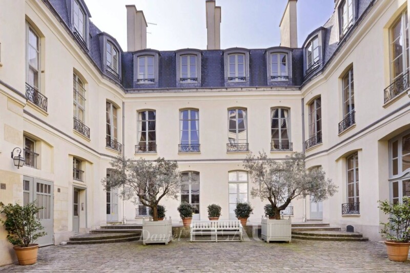 This meticulously renovated apartment offering 398 sqm of floor space and 173 sqm of living space as defined by the Carrez Law is on the garden level of the Hotel de Vaux, a superb mid 18th century private mansion located in the immediate vicinity of historic Place des Vosges. Set between the main courtyard and a garden and featuring between 3.80 and 4.50 metre high ceilings, it includes a spacious living/reception room opening onto a leafy 30 sqm patio, three 20 to 30 sqm bedrooms, and two bathrooms. Superb vaulted cellars benefiting from 3-metre high ceilings include a kitchen, a dining room, a home cinema, a study and a music room. État des risques et pollution: réalisé (null).