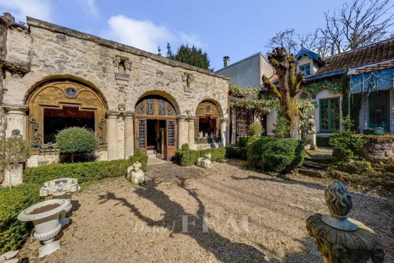 This unique property in the centre of Viroflay was built in 1883 for a renowned family from Versailles in a totally unique architectural style. Set in a 500 sqm plot, it offers over 400 sqm of living space including a living/reception room, a dining room, a kitchen, four bedrooms, and a bathroom/wc. Further convertible living space is currently used for storage. Among remarkable features are a cloister, a gothic-style chapel with stained glass, and a courtyard with a well surrounded by superb wrought-iron railings. Renovation is required. In a convenient location near the stations, in walking distance of convenience stores and the shops, 4 minutes from Fausses Reposes State Forest, and benefiting from easy A13, A86 and N118 road access.