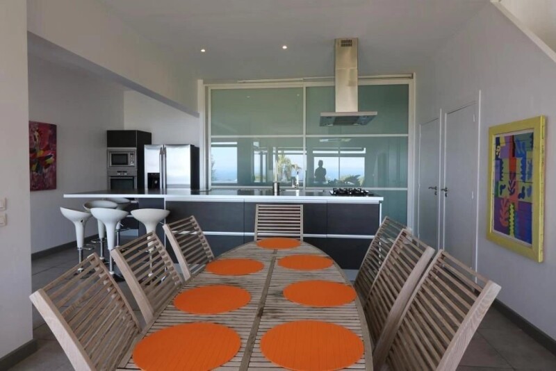 For sale in Sainte Maxime superb modern property of 2 villas with amazing sea view, each villa has its own swimming pool, with an exotic Caraibien garden of 1900 m2. On the hillside area of domaine de la Nartelle. Cote D'azur, French Riviera, Bay of St Tropez. The first villa consists of a living room, open modern fitted kitchen, 2 terraces, 3 bedrooms, toilet, shower, bath, swimming pool. The second villa is divided in 2 apartments. 1st floor: living room with chimney, open kitchen, bedroom with bath, 2 bedrooms, shower, toilet. Downstairs, living with open kitchen, terrace, bedroom with bathroom and open bathtub, another bedroom with shower, toilet. This villa also has its own pool of 15 x 4 m. A unique Product on the market! Contact us today to find out more.