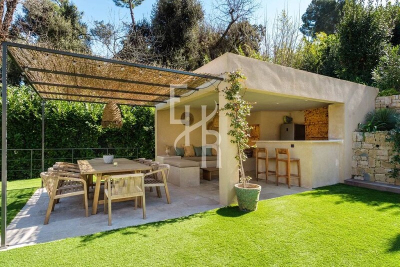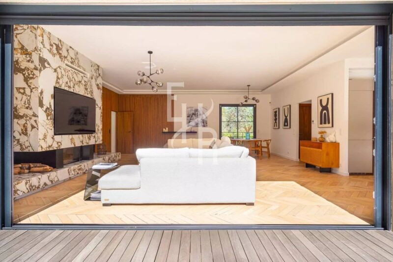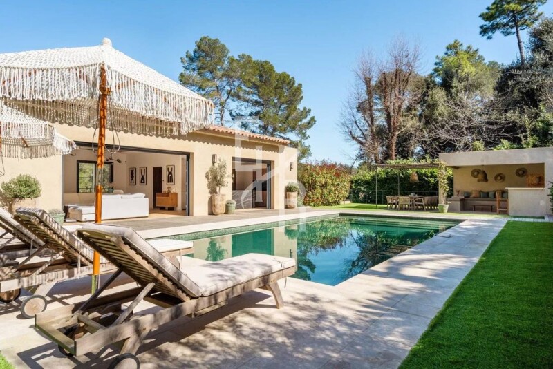 Discover this magnificent 198 m² villa in Mougins, offering an idyllic living environment. Nestled in the heart of Mougins' sought-after gated estate, this property has recently been renovated with quality materials. It features a vast living room, dining room and kitchen opening onto the terrace and pool. With 4 bedrooms and 5 rooms, this elegant property is equipped with modern facilities, including air conditioning, double glazing and home automation, ensuring comfort and tranquility. The carefully landscaped garden provides the perfect ambience for evenings out with family and friends, especially around the pool house. The swimming pool is a real asset, offering relaxation and pleasure on sunny Côte d'Azur days. This is a rare opportunity to acquire an exceptional residence in one of the most sought-after neighborhoods.