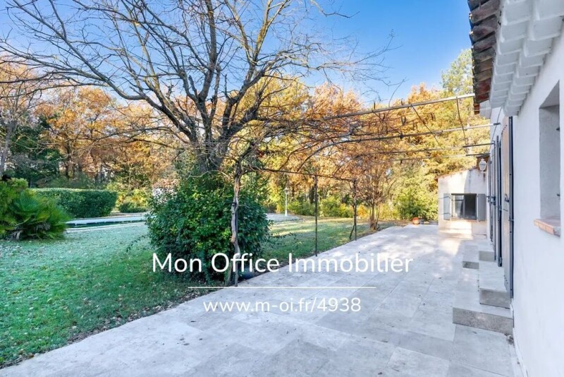 L'Office Immobilier presents for sale this 185 m² family villa with swimming pool, 20 minutes from the city center of Aix-en-Provence, in the town of Puy-Sainte-Réparade. Location and context: Located in a quiet and green area, this house is in the immediate vicinity of the village, offering a peaceful living environment while being accessible to amenities. Interior description: The villa opens onto a ground floor comprising an entrance with cupboard, a shower room and a separate toilet. You will discover a living space with fireplace, connected to a fitted and equipped kitchen, all benefiting from a view of the garden. Upstairs, a large games room and an office or additional bedroom complete the space. Sleeping area: The ground floor offers two bedrooms as well as a master suite with bathroom and dressing room. Exterior advantages: The wooded park of approximately 4500 m² hosts a swimming pool and a pool house, offering an ideal setting to enjoy sunny days. Additional services: The property has a large garage and numerous parking spaces to accommodate your vehicles. Some work is required to personalize this space according to your tastes. Non-compliant septic tank -- -- À votre service : Audrey SALA - +33670513370 Agent commercial Mon Office Immobilier immatriculé au RSAC de Aix en provence - N°88922840 Référence annonce : 4938-AUS. Le DPE est visible dans l'onglet informations énergétiques. Le prix indiqué comprend les honoraires à la charge de l'acheteur d'un montant de 4.46% inclu dans le prix affiché. Les informations sur les risques auxquels ce bien est exposé sont disponibles sur le site Géorisques : www.georisques.gouv.fr.