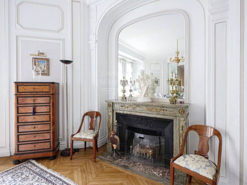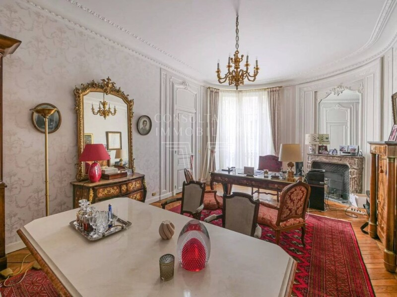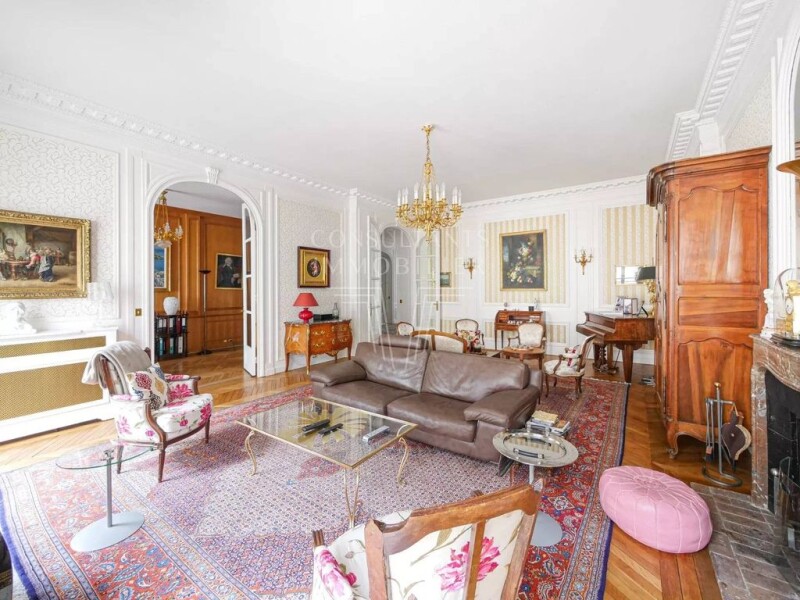EXCLUSIVE: OECD / MUETTE In a very high standard HAUSSMANNIAN building, CONSULTANTS IMMOBILIER offers you an apartment on a high floor with balconies composed as follows: An entrance with cloakroom and guest toilets, a large gallery serving a triple reception, a dining room dining room, an equipped eat-in kitchen with its laundry room, an office, a master suite with bathroom/shower/toilet, a bedroom/dressing room, three other suites each with a bathroom or shower and toilet. This apartment has retained all the charm of the old with 3.50 m high ceilings, moldings and 19th century fireplaces which give it a lot of character. Cellar. Two parking spaces and two service rooms with elevator. Ideal location. sectorization JANSON de SAILLY.