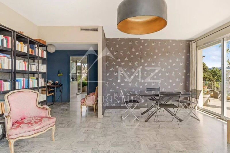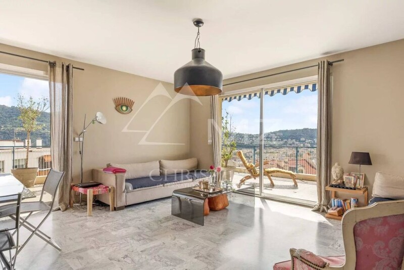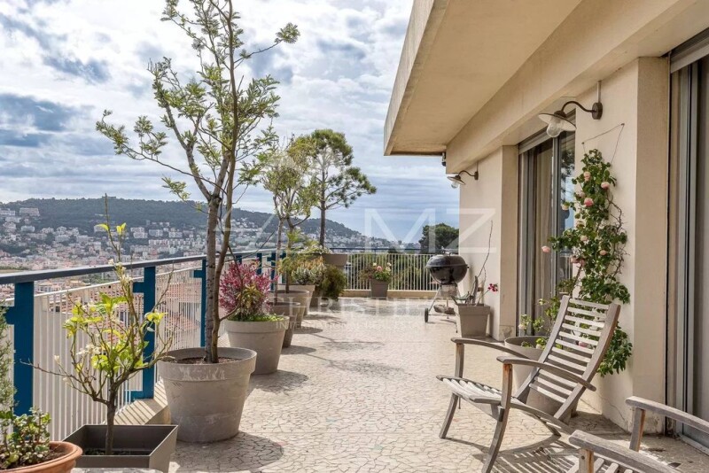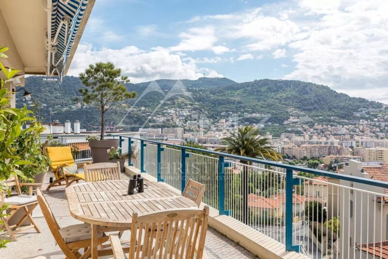 MICHAEL ZINGRAF REAL ESTATE presents you this unique apartment, on the top floor, bathed in sunlight, with its large terrace of 103 m² in triple exposure which offers a breathtaking view on the sea and the mountains. This apartment is located in a quiet and secure residence, surrounded by a very nice garden, and guarded. It is composed of 3 rooms, including 2 bedrooms, without vis-à-vis, an equipped kitchen and a bathroom with a toilet. This apartment is an ideal choice for those who are looking for a pleasant and comfortable home in a quiet area of Nice. A refreshment to be envisaged. A cellar and a garage complete this exceptional property.