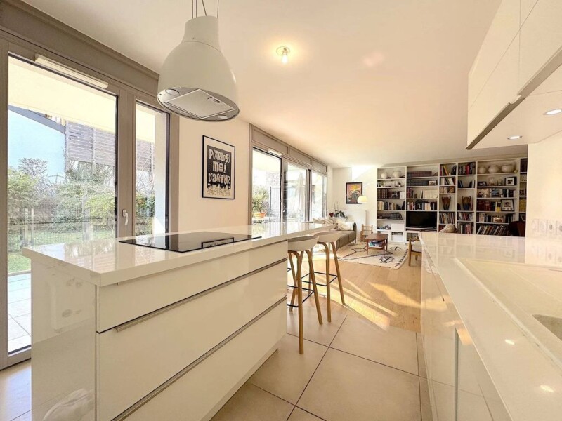Located in the heart of the sought-after Albigny district, discover this stunning ground-floor apartment of approximately 117.84 m2 in a small, high-end condominium built in 2019. An ideal setting combining modern comfort with a prime location, just steps from the lake and local amenities. A Bright and Functional Interior: The entrance with built-in storage leads to a 50 m2 living area, including a spacious lounge, dining room, and open-plan equipped kitchen. This space opens onto an 18 m2 terrace and a private 12 m2 garden, perfect for enjoying sunny days. On the night side, 4 generously sized bedrooms (ranging from 8.69 to 14 m2) provide ample comfort for family or guests. A bathroom, a shower room, and a separate WC complete this property. - High-Quality Features - Solid oak flooring (except in wet rooms). - Secured 17.16 m2 garage with motorized door and electric outlet. - 3.56 m2 cellar. - Electric roller shutters. A Prime Location: Less than 300 meters from the lake, this apartment offers a peaceful environment while remaining close to shops, schools, and public transport (bus stop within 100 meters). For additional information or to schedule a visit, contact us today.