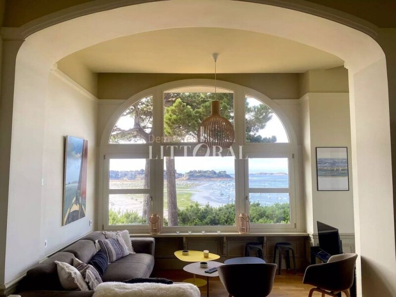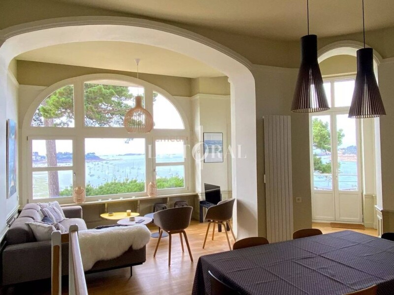 More than ever on the front line, La Vicomté, a blessed territory of DINARD, combines the local art of living with the deliciously British style of the resort. Highly coveted, with its feet in the water and its face to the wind, the view from the Pointe captures every gaze. Slightly higher, a bit larger, and even closer to the water, the villa to which this beautiful apartment belongs stands out just a bit more than all the others around. Thanks to its imposing bay window and access to the terrace and garden, the living room blends seamlessly with nature, allowing the omnipresent sea to take center stage. The property features 7 main rooms, including 4 bedrooms spread across 2 levels. EXCLUSIVE.