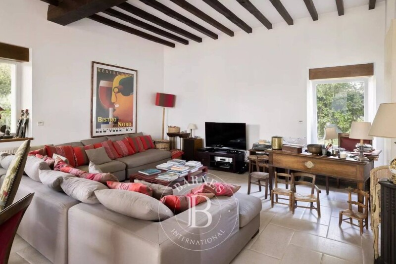 In the heart of the village of Ustaritz, this beautiful mansion, built at the beginning of the twentieth century, is listed as "remarkable American houses". The house of 350 m² is now arranged in family house, features beautiful volumes and 9 bedrooms, double living room opening onto the south terrace, a large dining room, kitchen and an office. Pleasant high ceilings, beautiful old stairwell, many fitted wardrobes, 5 bathrooms/ shower and 2 water points and 8 toilets. Basement with laundry. A carport for 2 cars completes this property.
