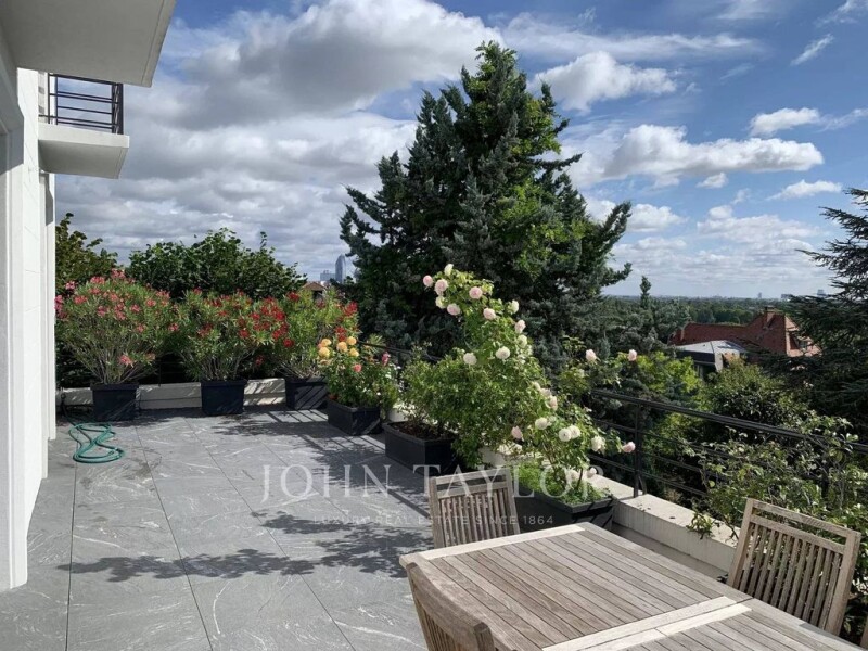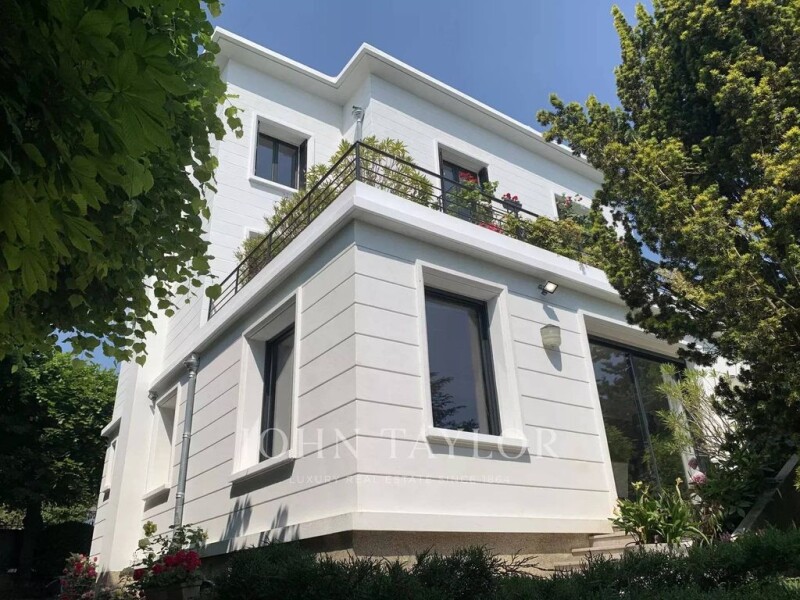 Sought-after location - Colline du Val d'Or, Saint Cloud. Panoramic views over Paris, the Seine, the Bois de Boulogne and the Eiffel Tower. Nestled in a 500m² garden, an elegant Art Deco mansion dedicated to receptions and family life. With a surface area of 400m² and no adjoining buildings, it was built in 1912 and subsequently remodeled by a renowned architect and decorator. It is composed as follows: - An entrance gallery - Triple reception room - Dining room - A galley kitchen - Five bedrooms - Three bathrooms - Three toilets - Dressing room - Independent studio or games/sports/cinema room - Wine cellar - Finished basement - Utility room - Two terraces - Garden area - Indoor and outdoor garages Possibility of converting this property into 7 bedrooms. Impeccably maintained and in move-in condition, this residence combines architectural aesthetics, modern comfort and prime location, making it a rare opportunity. With west-facing living and sleeping areas, this property offers privacy and benefits from 3-meter high ceilings. Several educational establishments nearby: the American School of Paris, the Internationale Deutsche Schule Paris, the Saint-Joseph school group and a Montessori school. The tramway (line T2) and train (line L) take you to the center of Paris in less than 20 minutes, and to La Défense in less than 10 minutes. The A13 freeway provides fast links to the A86, A12 and Normandy.