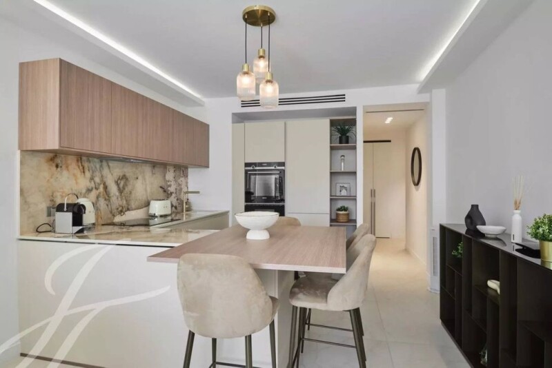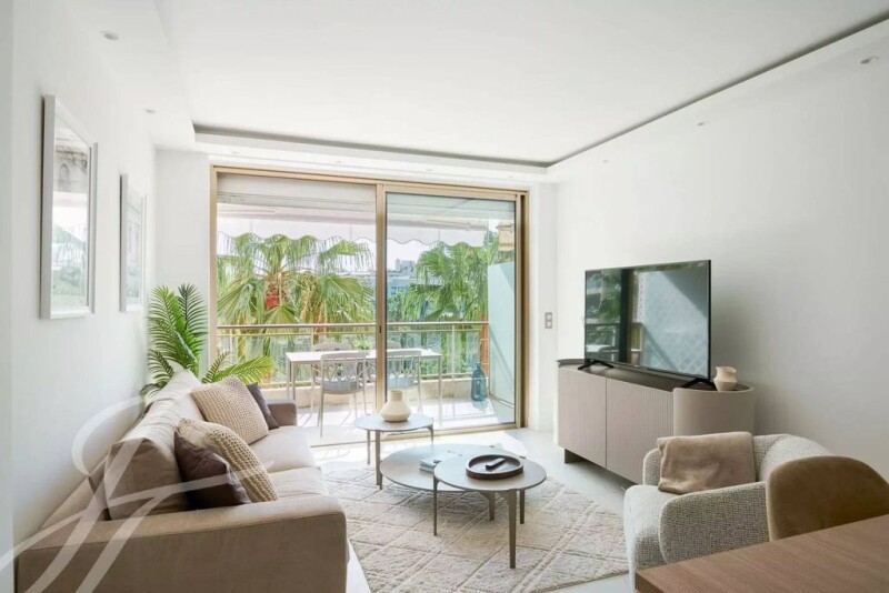 Located in a luxury residence in the heart of the Croisette, this flat enjoys a prime location overlooking the delightful Mediterranean garden of the famous Mondrian hotel. Completely renovated in a contemporary style, the flat has 70 sq.m of living space and opens onto a beautiful sea-view terrace. It comprises a living room with open-plan kitchen and two en suite bedrooms. The residence has a 7/7 security service from 8am to 8pm. A cellar in the basement. Optional garage (200.000 €).