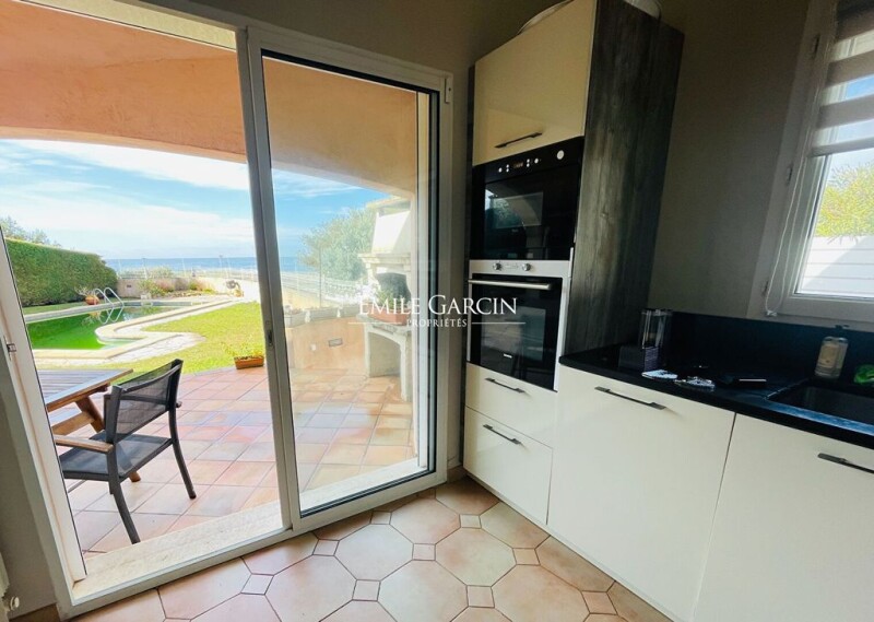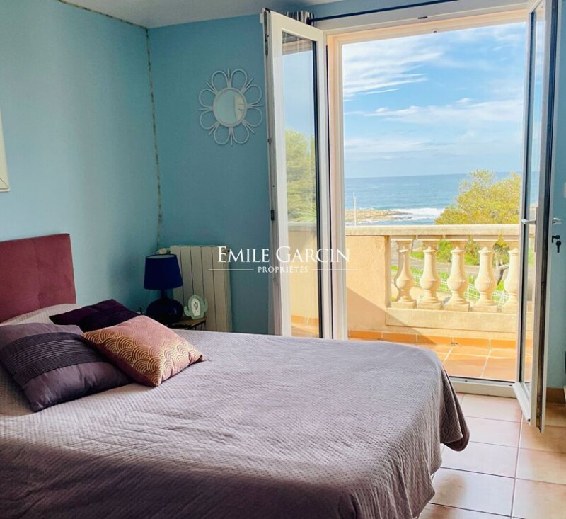 Well maintained seafront house presenting 140 sq.m of living area spread over two levels in a quiet area of Sausset-les-Pins. Sitting on over 600 sq.m of land, the house offers two bedrooms on the ground floor (one with a shower room). On the same level, you will find the fitted semi-open kitchen and its dining area, which lead to a large living room with fireplace. The living area backs onto a terrace that extends into the garden, which is equipped with a free-form swimming pool. On the first level, there are two bedrooms opening onto a terrace with a sea view as well as a bathroom and a storage space. The house offers a modern level of comfort thanks to its reversible air conditioning, gas heating, automatic watering system and outdoor lighting. Additional facilities include a garage with high ceilings (30 sq.m), a utility area and an attic space.