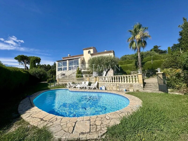 **EXCLUSIVITY** PRICE REDUCTION! This villa is perfect for those who dream of a home with an unobstructed, unobstructed view. It offers a unique panorama of the sea and a splendid view of the historic village of Saint-Paul-de-Vence. Located in a peaceful setting, it's just a few minutes' walk from the center of Vence. This 150 m² villa features a bright living room with fireplace, a veranda, a separate kitchen, separate toilet, a master suite with bathroom opening onto a beautiful sea-view terrace, and a second bedroom with private shower room on the 1st floor. On the ground floor are a living room with kitchenette, two large bedrooms with en-suite shower rooms and WC. The villa is surrounded by a well-kept garden that creates a peaceful oasis. Here you'll find a lovely swimming pool, ideal for a refreshing dip on hot summer days, as well as a pétanque court. The large enclosed garage offers ample parking and storage space. A few renovations will be needed to bring it up to current standards, both technically and aesthetically. This is a great opportunity to personalize a property in an exceptional setting. Come and visit! État des risques et pollution: réalisé (null).
