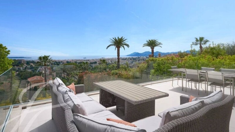 Located in the heart of the residential Cannet area, only 10 minutes walk from the historic district and all amenities, this superb property benefits from a quiet and green environment. Entirely renovated with high quality materials, the villa, featured with a lift, has a living area of approximately 500 sq.m distributed on 4 levels. It consists of 5 en suite bedrooms plus an independent 2-room flat. Facing due south and overlooking the bay of Cannes, it enjoys wonderful sea views from the Lerins islands to the Esterel massif. Nestled in a lush Mediterranean landscaped park, this villa offers great comfort and is completed by a superb swimming pool area.