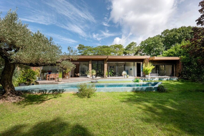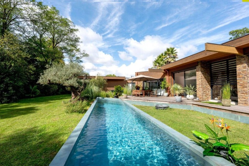 BORDEAUX 20 MINUTES - SPECTACULAR CONTEMPORARY VILLA - 317M² - PARK - POOL - GARAGES Just twenty minutes from the heart of Bordeaux, nestled at the end of a private lane and completely shielded from view, this exceptional contemporary villa invites you to escape into its serene environment. Designed in 2017 by a renowned architect, the villa spans 317 m² of light-filled living space, mostly on one level, set within a lush 1,892 m² garden. The bold and refined architecture combines wood, glass, and concrete, resulting in an enchanting purity of design. The expansive living area is flooded with light through panoramic floor-to-ceiling windows, opening onto landscaped gardens and a strikingly designed pool, a true invitation to relaxation. The villa’s generous proportions and harmonious blend of luxurious materials create a warm yet spectacular living environment. The layout includes a welcoming entrance hall, a spacious living room, a convivial dining area, and an open-plan modern kitchen, offering the ideal setting for entertaining. The sleeping quarters are equally impressive, with two luxurious master suites, a third bedroom with an en-suite bathroom, and a separate office that could easily be converted into two additional bedrooms. An art studio and a two-car garage complete the property, along with an external carport. The villa also boasts a beautifully exposed wooden terrace, offering stunning views of the house, its Bali-inspired pool, and a natural pond, creating a peaceful oasis. A true architectural masterpiece, this property combines outstanding energy efficiency with absolute comfort, all within a lush, green setting just moments from Bordeaux. A rare and precious place to live, where every detail has been meticulously designed to provide a unique experience. - What we love: the abundant natural light, the spectacular volumes, the intimate and meticulously landscaped garden, the breathtaking pool, and the ideal location, just a stone’s throw from Bordeaux. Contact: Mr. Etienne Delpech + 33 785 094 770 for Bordeaux Sotheby's International Realty. Prestigious real estate, experts in luxury properties and exceptional properties, in Bordeaux and its surroundings. etienne.delpech@bordeauxsothebysrealty.com.