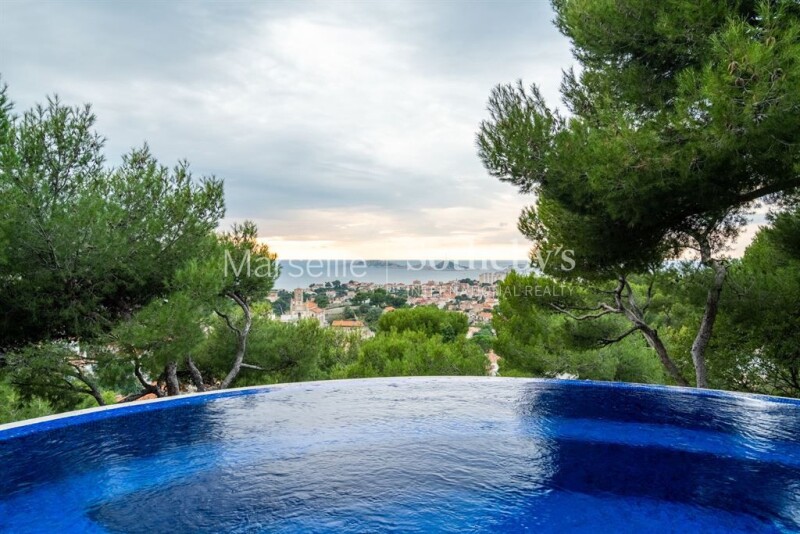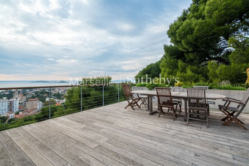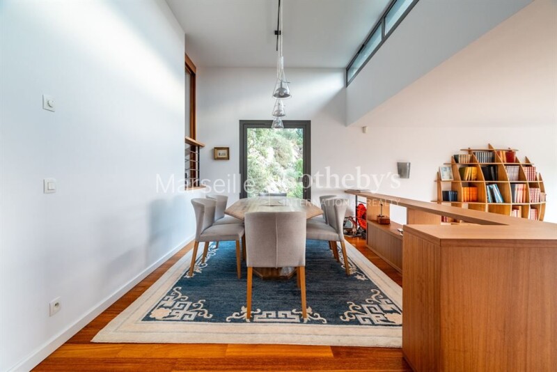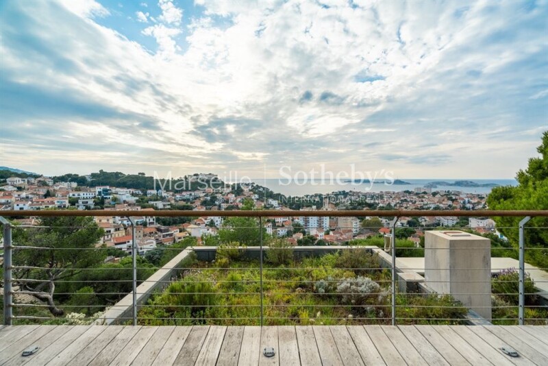Exclusive Listing – For sale in Roucas Blanc, Marseille 7th, a 274 sqm villa with a breathtaking sea view, set on a 1,125 sqm plot. Nestled in the heart of the prestigious Roucas Blanc neighborhood, this sumptuous property offers an exceptional living environment, combining luxury, comfort, and tranquility. Spanning multiple levels, it unveils unique panoramic views of the sea and the surrounding area, evolving throughout the day like a true masterpiece. Upon entering, you will be captivated by a vast living room featuring a fireplace, bathed in natural light thanks to its large bay windows. This elegant space opens onto a magnificent terrace overlooking the sea, offering a daily spectacle of unparalleled beauty. A spacious semi-open kitchen extends into a generous dining room, perfect for entertaining in a refined setting. The two upper levels house four spacious bedrooms, including a master suite with a walk-in closet and a private bathroom. A study and a library complete this floor, providing an ideal setting for work or peaceful relaxation. From each terrace, the stunning sea view unfolds like a living painting, where the shimmering reflections of the waves and the changing hues of the sky create a mesmerizing backdrop. This exceptional home also features a secure garage accommodating two vehicles, along with an additional parking space within the gated residence.