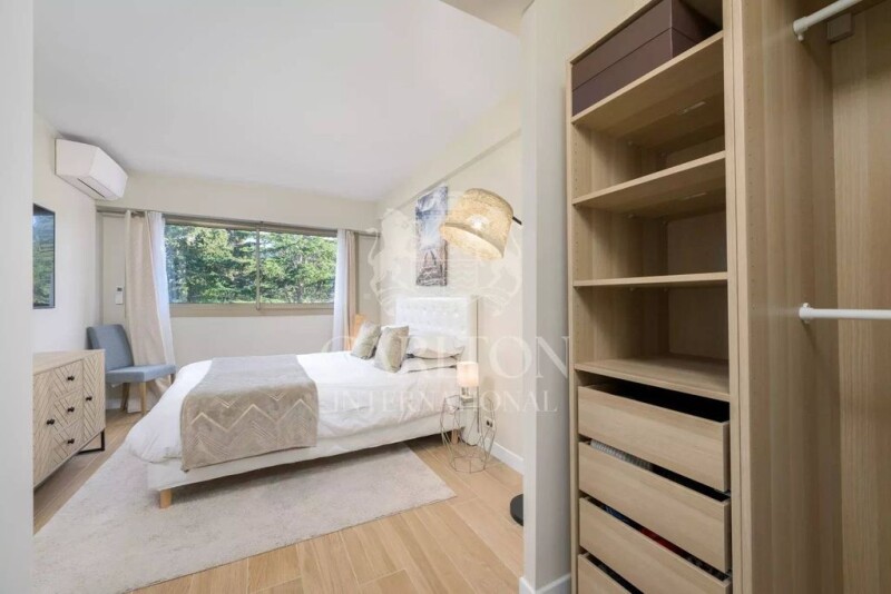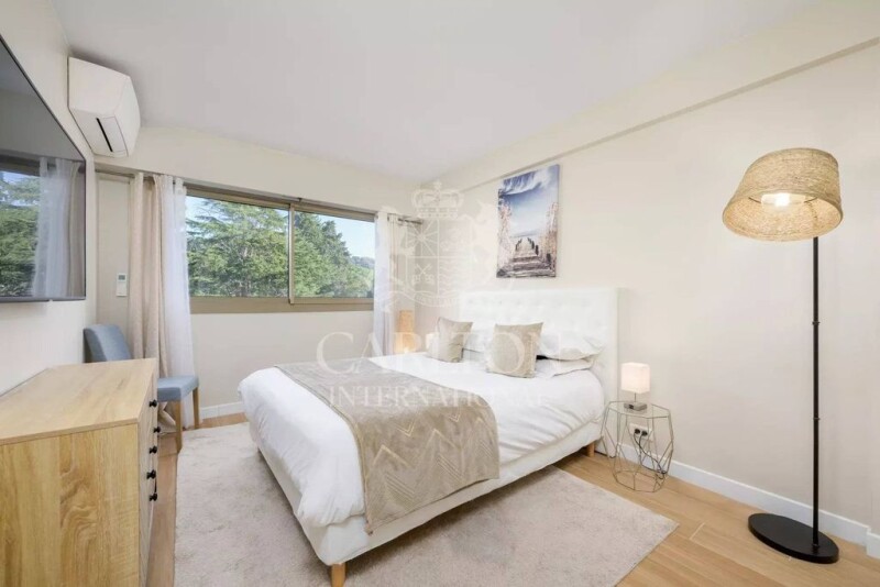 Beautifully renovated, 90 m² through-apartment on the 2nd floor of a prestigious and secure residence, offering a peaceful and refined lifestyle with a swimming pool and concierge service. This spacious apartment features a bright 25 m² living room that opens onto a serene terrace with unobstructed views of the residence's lush, landscaped park. The master suite includes a walk-in closet and an en-suite shower room, while a second bedroom also boasts its own en-suite shower room. A third room can be adapted to suit your needs. The apartment can be sold furnished upon request. Additional features include a cellar and a secure indoor parking space, which can be converted into a garage. An additional parking space is available for purchase within the residence, and a visitor parking area ensures added convenience. Conveniently located close to local amenities and the iconic Croisette, this property perfectly blends tranquility with proximity to Cannes' most renowned attractions. REF 00664 Agency fees are payable by the seller. No ongoing legal procedures. Estimated energy expenses for 2021: Between €670 and €960 per year. For more information on potential risks associated with this property, visit:.
