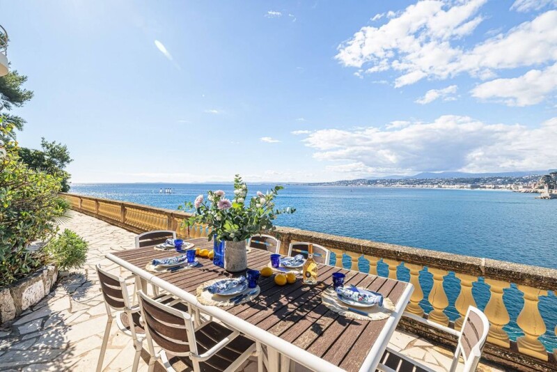 This sumptuous three-room apartment, located in the prestigious Villa Marichu in Nice, offers breathtaking views of the Mediterranean. Designed in 1933 by architect Louis Heitzler, this Art Deco masterpiece guarantees a unique living experience. Located on the first floor, the apartment impresses with its brightness and privacy. It features a large open kitchen, a living room with a balcony, a dining area with direct access to a spacious terrace, two bedrooms with balconies, and two bathrooms. Its standout feature? A spectacular 60 m² terrace with panoramic views stretching from Nice’s port to Cap d’Antibes, along with private sea access — a rare privilege. A truly exceptional property combining Art Deco elegance with modern comfort, in one of the most sought-after neighborhoods in Nice. A rare opportunity for discerning buyers in search of prestige and exclusivity.