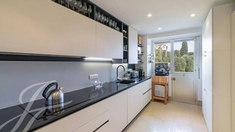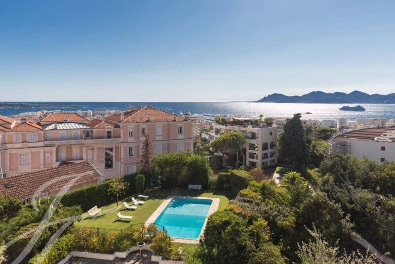 In a small, secure residence with swimming pool, a few steps from shops and the Croisette, magnificent 4-room corner apartment with breathtaking panoramic sea views. It comprises an entrance hall, an equipped kitchen, a living room opening onto a terrace with sea view, a master bedroom with en suite shower room and toilet, also opening onto the terrace with sea view, two bedrooms opening onto a balcony with view of California, and two bathrooms with toilet. The apartment is sold with a cellar and garage.