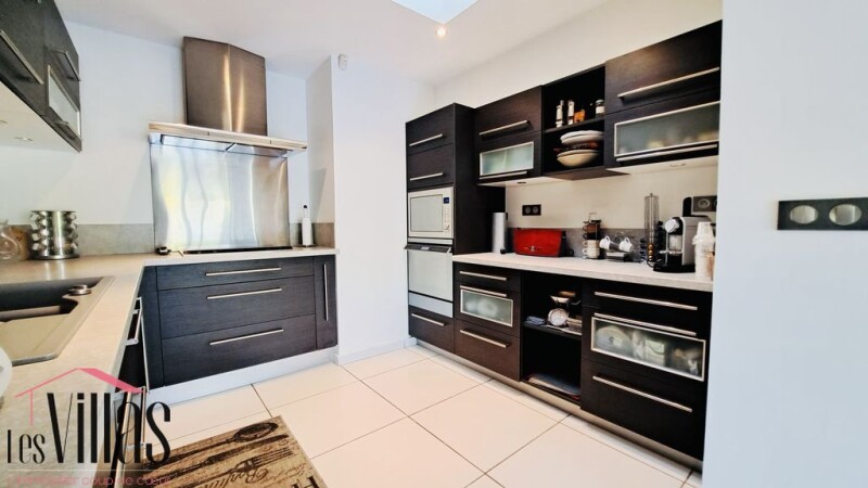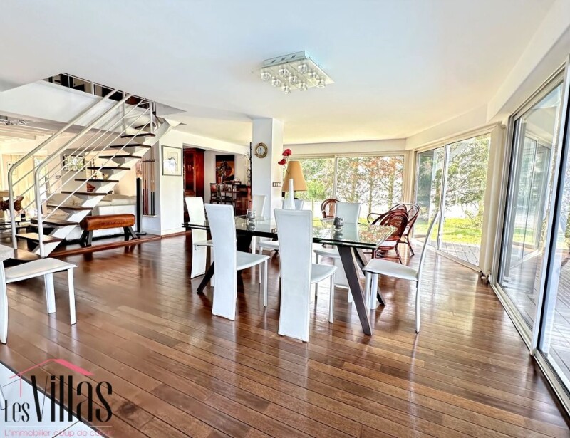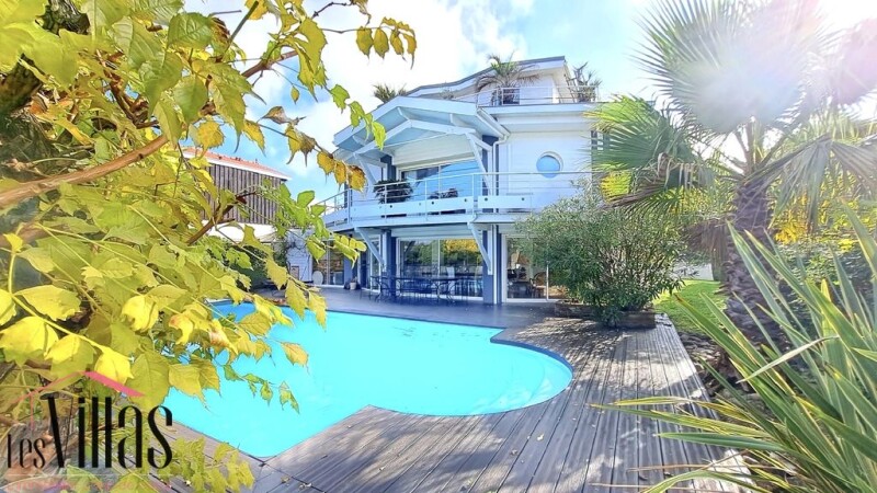 Come and discover this sumptuous 230 m2 architect-designed villa built on a plot of 1100 m2 on the port of Cassy. On the ground floor, you will be charmed by a spacious living room of over 100 m2 with a living room bathed in light, a beautiful fireplace, a fully equipped open kitchen, a laundry room and a large adjoining garage of 63 m2. It also has an extra bedroom or office with a shower room and a toilet. A functional summer kitchen is at your disposal, opening onto a large terrace and a heated 12.5 x 5 swimming pool. On the first floor there is a mezzanine converted into an office and dressing room which leads to 2 master suites and 1 other bedroom, all with a balcony. On the upper level you will find a gym of approximately 19 m2 with stunning views of the harbour. This superb villa has an ideal location leading to Andernos and up to Cap Ferret. A sure favorite and one to discover without delay! Agency fees payable by the seller. Contact Aurélie at 06.50.80.72.26 RSAC 982 514 531 Information on the risks to which this property is exposed is available on request or on the Géorisques website: www.georisques.gouv.fr Find all our villas for sale on les-villas.fr.