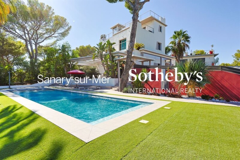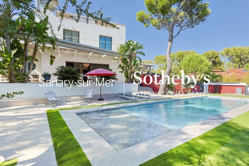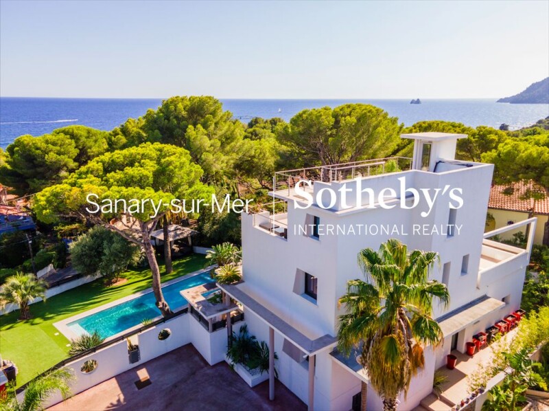Exclusivity - Contemporary house with pool, rooftop and sea view for sale in La Seyne-sur-Mer. Located in the sought-after Mar Vivo district of La Seyne-sur-Mer, this superb contemporary villa in an exceptional location puts you within walking distance of the beaches. Divided into 3 levels served by an elevator, this house offers incredible views of the sea, the surrounding islands and the surrounding forest. With a floor area of 227 sqm on a 1,000 sqm plot, the main level features a double living room opening onto the exterior, an open-plan kitchen, an office area and a bedroom with en-suite shower room. Upstairs are 2 large bedrooms, an extra bedroom, a bathroom and a splendid terrace. The master suite occupies the top floor and opens onto a private terrace with breathtaking sea views. From here, access to the house's rooftop takes you to the highest point of this exceptional property, where a jacuzzi and relaxation area take pride of place in front of an incomparable panorama. The garden features a 15-meter-long heated and covered swimming pool, vast terraces and a Balinese-style landscaped garden with gazebo and exotic sculptures. Garage, indoor parking and home automation complete this exceptional property. You'll find all the amenities you need to feel at home in this contemporary gem, bathed in south-facing light. Information on the risks to which this property is exposed is available on the Georisques website: www.georisques.gouv.fr.