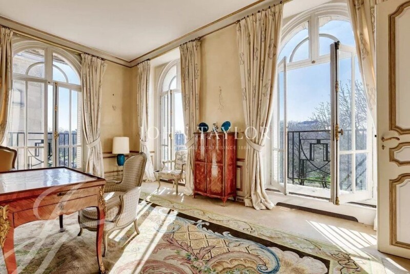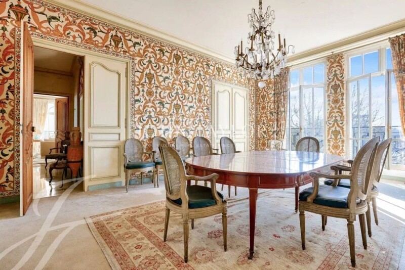 Boulevard Maurice Barrès - full sun In a high-standard freestone corner building with elevator, janitor and refined communal areas, we offer this elegant, third-floor, south-facing, 294 m² (Carrez law) reception and family apartment. It comprises - A beautiful entrance hall - A triple reception room - A study - A vast dining kitchen with pantry - A master bedroom - Two bedrooms - Three bathrooms - Three toilets - Dressing room - One laundry room - Two adjoining 14 m² studios on the same landing Possibility of converting this property into five or six bedrooms. This property boasts generous volumes and high ceilings (3.30 m). The corner layout is particularly pleasant, with a lovely view of the Bois de Boulogne and the Eiffel Tower. The apartment has retained all its old-world charm, with parquet flooring, moldings, fireplaces and wood panelling. A large garage, two cellars and a right to park in the square complete this property.