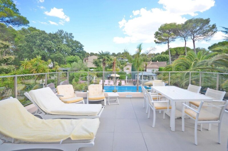 Prized residential gated community not far from Cannes and its famous beaches, Mouans Sartoux, close to all amenities, beautiful Provencal style villa. Inside it offers a welcoming entrance hall, a spacious bright lounge and dining area with a fireplace, a fully equipped kitchen, in all 6 bedrooms and 5 bathrooms. Built on a private plot fully landscaped with high hedges, palm trees, creating a very private pool area with Jacuzzi, then there is a caretaker's house and guest parking. Contact us today to find out more.