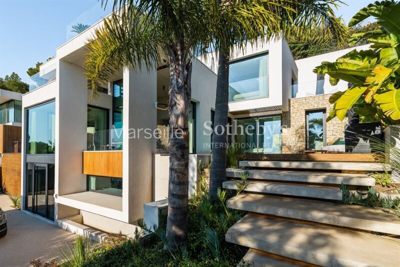 For sale in Carry-le-Rouet: exceptional contemporary villa with a pool and sea view. Just 5 minutes from the port of Carry-le-Rouet, this unique 387 sqm property offers a prestigious lifestyle where luxury and nature blend harmoniously. Designed by a renowned architect, the interior combines contemporary elegance with warmth, enhanced by abundant natural light in every room. The villa features an expansive living area with impressive volumes, an open-plan kitchen that seamlessly balances design and functionality, four spacious bedrooms—including two master suites with private bathrooms—a fitness room, a home cinema, and a game room. The villa’s southwest orientation ensures optimal sunlight from morning to evening. Outside, a heated infinity pool surrounded by stylish terraces and a beautifully landscaped garden creates a serene ambiance, perfect for relaxation and enjoying every moment. An exceptional villa for discerning clients seeking exclusivity and refinement.