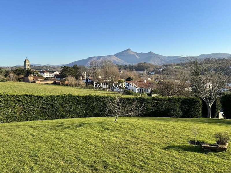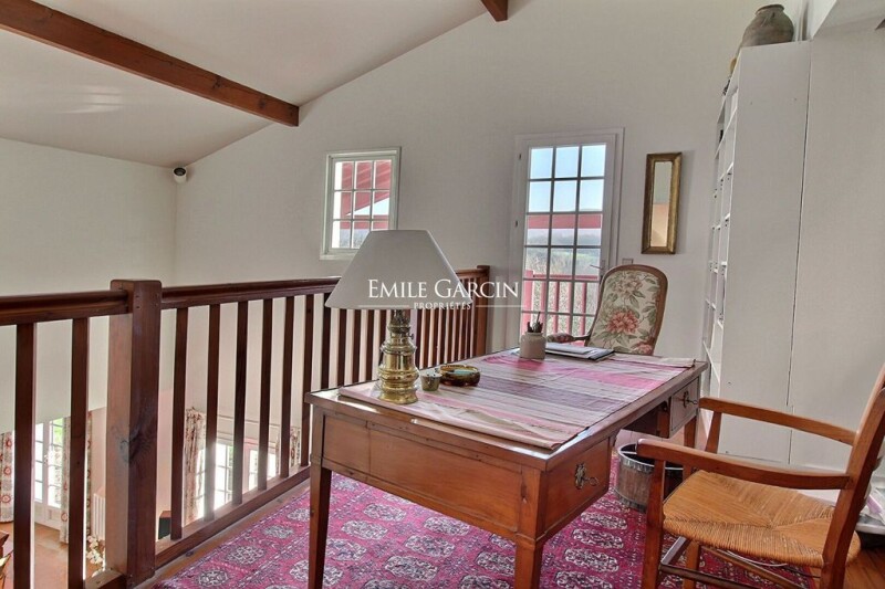 A few minutes from the village, built on a park of more than 5000 sqm, in a dominant position facing south facing the Rhune, Opulent and warm family home of approximately 260 sqm composed of a beautiful entrance, a double reception opening onto the sheltered terrace and the park, a small cozy living room with fireplace, kitchen and its office, a bedroom en suite with bathroom and dressing room. An independent bedroom and its small private terrace. Upstairs, large mezzanine - office opening onto a south-facing balcony, four bedrooms and two bathrooms. A large attic converted with storage. A beautiful tree-lined and landscaped path guides your steps to this family property bringing charm and tranquility from the first glance. A beautiful, flat and large bucolic garden will allow you pleasant moments of relaxation. For your parking a double garage as well as numerous outdoor spaces. A unique property in a privileged environment with exceptional views and close to all amenities.