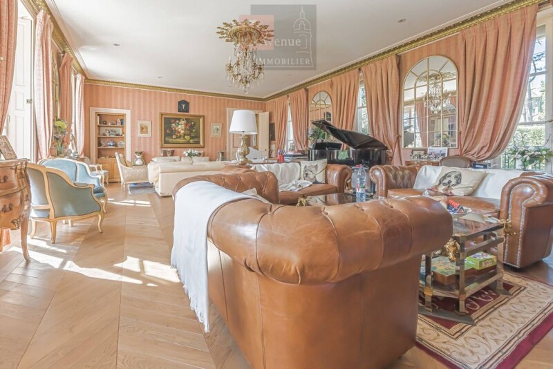 Exceptional Château for sale with 19,000m2 park, crossed by a stream, tennis court, private furnished chapel, 3 caretaker's houses, paddock and meadow The property is accessed via a beautiful, planted driveway lined with century-old trees. On the first level, entrance hall opening onto a large 60m2 living room opening onto the terrace and the park (south-facing), bar, dining room, kitchen, and office, Versailles parquet flooring, double exposure, old fireplaces. The first floor includes 3 bedrooms, each with bathrooms, including a large 65m2 suite. On the top level, there is a large games room, 3 bedrooms and a bathroom. In the basement, boiler room, laundry room, workshop as well as a set of very beautiful 16th century cellars in the basements. Several outbuildings, including 3 beautiful 18th century caretaker's houses, tennis court, horse boxes, paddock and meadow as well as a fully furnished private chapel. The castle has undergone several restorations, and you'll marvel at the property's idyllic and unspoiled setting. Nestled in lush greenery, this exceptional residence will captivate you with its character, generous proportions, and magnificent grounds. Amenities/transport: private and public schools on site, middle school, high school 5 minutes by car, numerous shops. Roissy Charles de Gaulle Airport 30 minutes, Chantilly-Gouvieux train station 5 minutes We invite you to discover this house from a different angle, thanks to drone shots in 4K video. To access it, click on the video icon or go to our YouTube channel 5EMEAVENUEIMMOBILIER. Information on the risks to which this property may be exposed is available on the Géorisques website: www.georisques.gouv.fr.