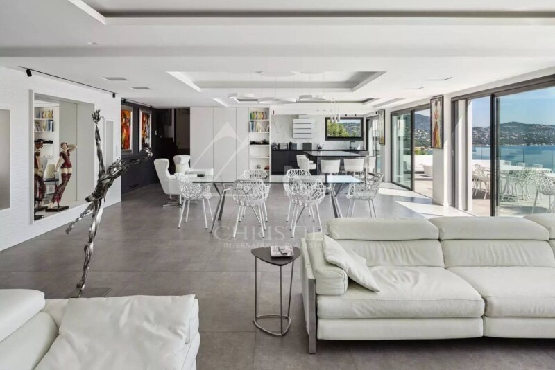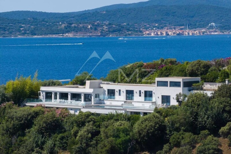 This contemporary villa is a truly unique property! One of the best views in Sainte-Maxime, if not the best! Its exceptional location means you can take full advantage of a breathtaking sea view. From the moment you enter, you'll be amazed by the panoramic sea view. The owners have created a harmonious living space, where the inside and outside are one and the same. The main living area, which spans more than 100m2, is spacious and bright, with sea views everywhere. The 6 en suite bedrooms, each with its own shower room and toilet, complete the property and ensure optimum comfort for residents. Outside, a splendid infinity pool overlooking the sea and a summer kitchen complete this exceptional setting. The facilities are meticulous, the decor refined and the materials top-of-the-range. A wine cellar will delight lovers of fine wines. This villa also has a large tiled garage. It is set in grounds of around 1600m2, providing an idyllic, peaceful setting for your home. All in all, this contemporary villa is a real gem on the Côte d'Azur, for those who love exceptional panoramic views and contemporary design.