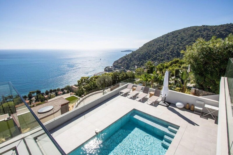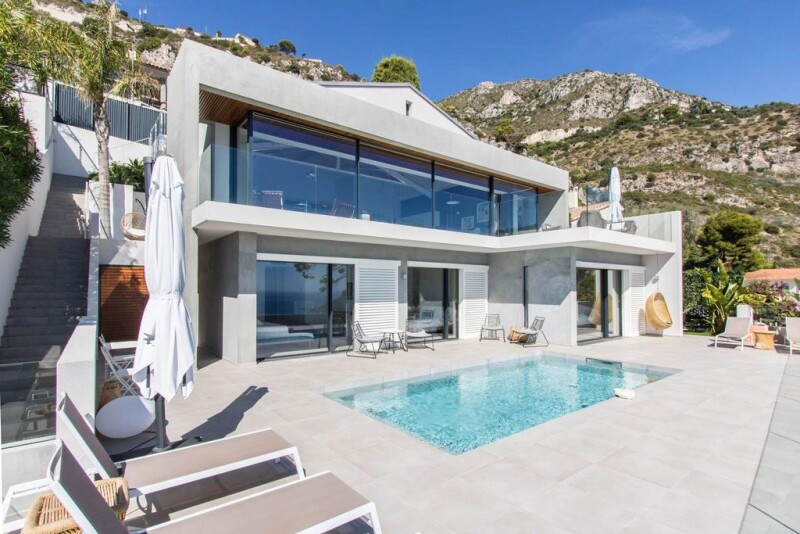 Located on the heights of Eze sur Mer, offering a spectacular view onto the Bay, superb modern and luxury villa with lift completely renovated of approx. 200 m2 Beautifully presented, modern property set out on 2 levels including: - on the 1st floor: a stunning and spacious living-room with very high ceiling open onto terrace, open plan kitchen equipped, guest toilet and cloakroom. - on the ground floor: master bedroom with dressing and bathroom ensuite (bathtub and shower), two other bedrooms each with shower room and toilet. Plot 500 m2, heated swimming-pool. Air conditioning in every room. Large garage for 4 cars, laundry.