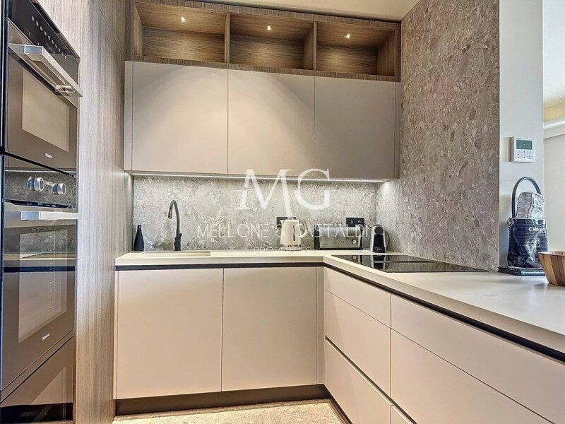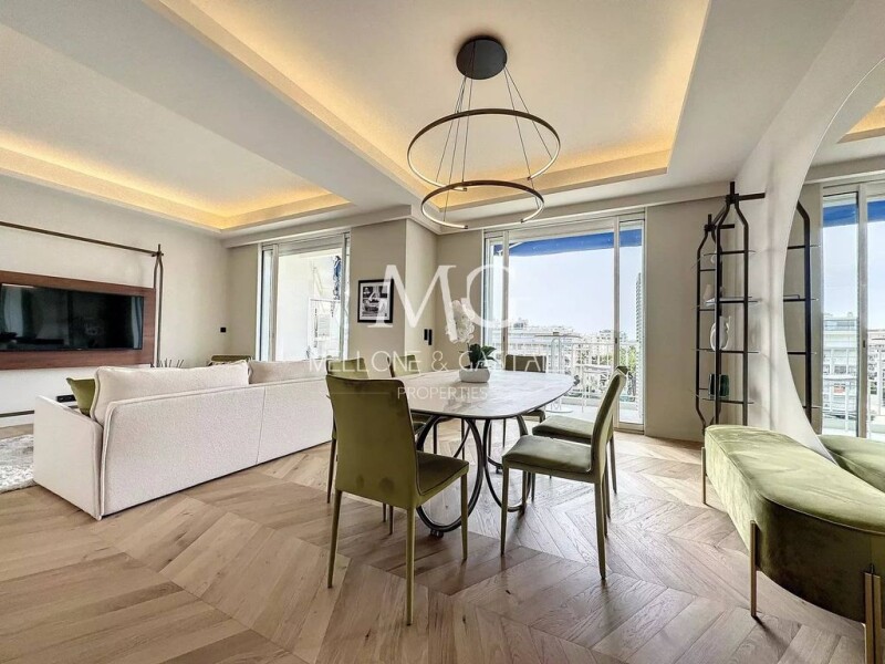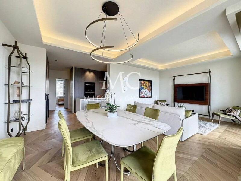 On the Croisette, in a luxury residence, magnificent 3 bedrooms apartment, fully renovated, of 100m2 with a 10m2 terrace enjoying a view of the sea and Port Canto. It consists of a spacious living room opening onto a south-facing terrace with a green view of the sea. A fitted and equipped open kitchen. 3 en-suite bedrooms. The apartment is completely renovated with quality materials. Garage in option for 150 000€ A cellar completes this magnificent apartment to visit quickly,.