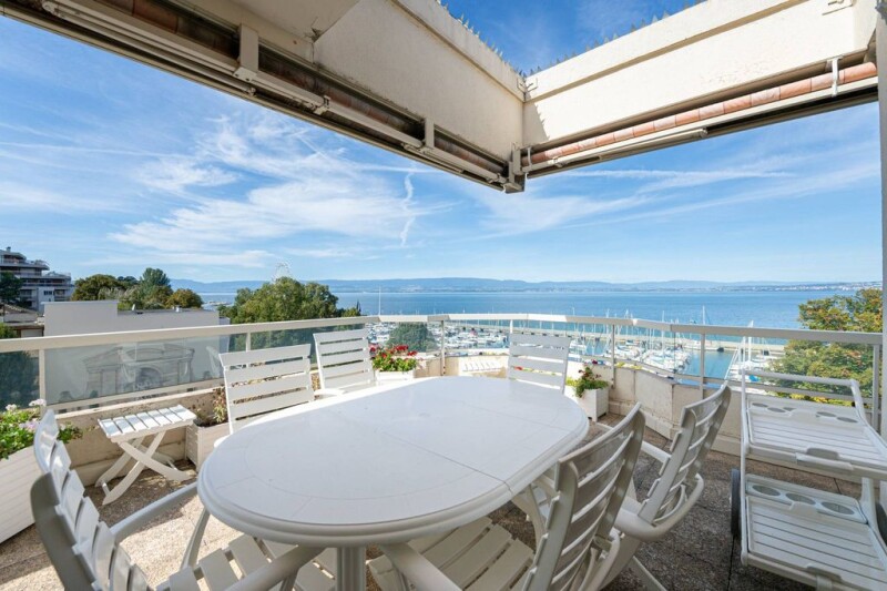 EVIAN SOTHEBY'S INTERNATIONAL REALTY offers you: In Evian facing the marina and enjoying a breathtaking view of LÉMAN, large prestigious type 8 penthouse of 260 m2, distributed over 2 floors of a building with elevator. The apartment with high quality decoration and high-end services (marble floor, high quality moldings and woodwork, gilding), is composed as follows: an entrance, a large living/dining room of more than 85 m2 giving access to the adjoining balcony facing the lake, a separate kitchen, 5 bedrooms, 1 small office, 1 laundry room, 2 bathrooms, 2 shower rooms, 4 toilets. In annex: a cellar and three covered parking spaces. EVIAN SOTHEBY'S INTERNATIONAL REALTY, YOUR EXPERT IN THE SALE OF LUXURY PROPERTIES IN EVIAN AND ITS SURROUNDINGS.