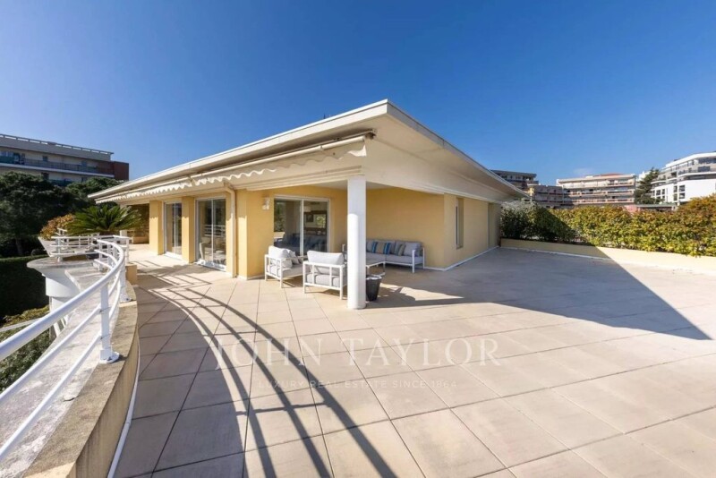 Beautiful 136m² penthouse with a lovely sea view and a 174sqm terrace, located in an elegant luxury residence with a swimming pool and controlled access. A peaceful residential area with amenities nearby. Private access to the villa via elevator, entrance hall, spacious 42sqm living/dining room opening onto the terrace, beautiful fitted kitchen, a beautiful master bedroom with dressing room, shower room and toilet, three bedrooms, toilet, a bathroom and a shower room. Two garages and one cellar. État des risques et pollution: réalisé (null).