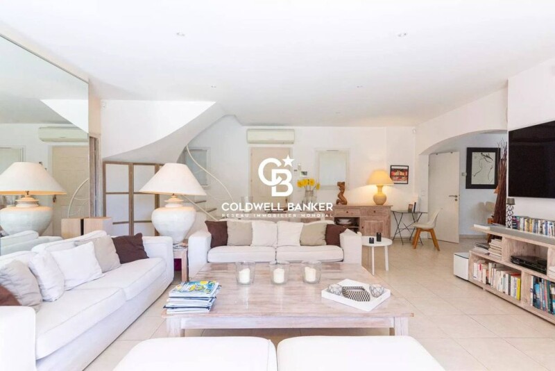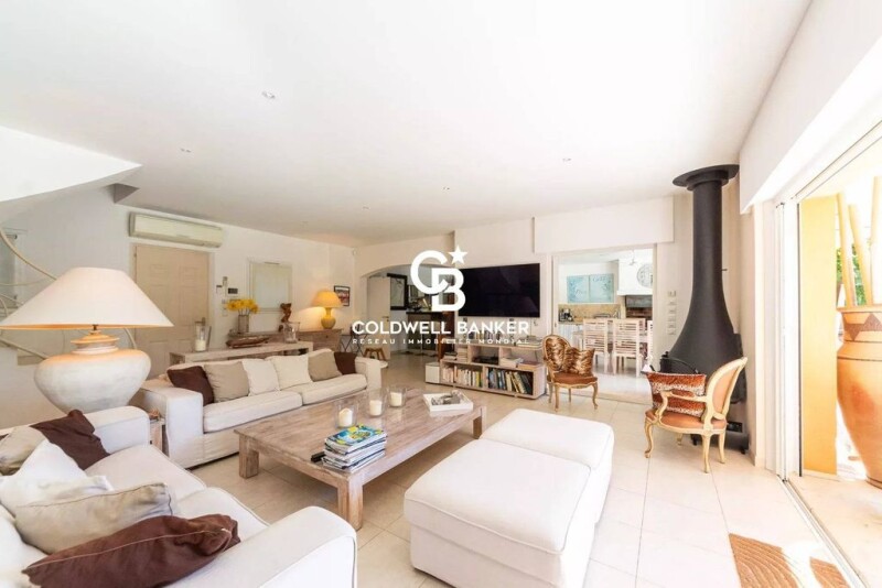 Discover this charming house of approximately 150 m², nestled on a 450 m² plot, in the heart of a peaceful neighborhood just a few steps from the village of Sainte-Maxime. On the ground floor: a spacious living room bathed in natural light, featuring a fireplace. The fully equipped open kitchen and dining area create a perfect space for convivial moments. A master suite with an en-suite bathroom, built-in wardrobes, and direct access to the lush garden. An independent studio, complete with a kitchenette, toilet, and separate shower room. Additionally, a finished cellar offers versatile space. Upstairs, two spacious bedrooms with built-in wardrobes share a shower room and separate toilet. The landscaped garden, adorned with exotic plants, and a beautiful sparkling pool complete the property. Air conditioning - double glazing - carport.