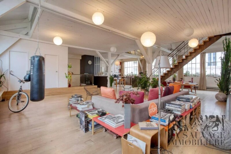 On the top floor of a former industrial building dating from the 19th century, right next to the legendary Canal Saint Martin, lies a real estate masterpiece. This sumptuous duplex loft of 316 m2 (352 m2 in total) is the result of the elegant and refined renovation of a former car parts factory, harmoniously combining the charm of the past with the modernity of the present. The timeless elegance of this historic building is illuminated by large, double-glazed windows and a careful layout of interior glass walls that allow light to circulate across the building. The first floor features a large living room with ceilings of up to 3.5 metres and exposed beams, evoking a sense of grandeur, with a spacious open-plan kitchen alongside. Continuing on, a master suite with slate bathroom and private facilities, a workshop housing its artistic secrets and a large storeroom complete this first level full of charm and character. The blonde oak parquet flooring and white-painted wooden ceiling enhance the ambience and make the space even brighter. A central suspended staircase, like a work of art, leads to the alignment of spaces and guides your gaze to the upper floor, where the story continues. Upstairs, you'll be greeted by the mezzanine, part of the refurbishment, where you'll find a relaxation area, a second master suite with its own private bathroom in Burgundy stone, two other bedrooms, a bathroom, and a study where comfort and discretion combine in perfect symphony. This rare living space with its industrial past is much more than just a property; it's a living work of art that can be fully modulated, a magnificently preserved witness to the past with a contemporary flavour. Welcome to a reality where every moment is a page in the history of Paris and the charm of the 19th century. This property is subject to co-ownership status. Metro station Line 7 "Louis Blanc". Information and visits 7 days a week. Agency fees payable by the vendor. État des risques et pollution: réalisé (null).