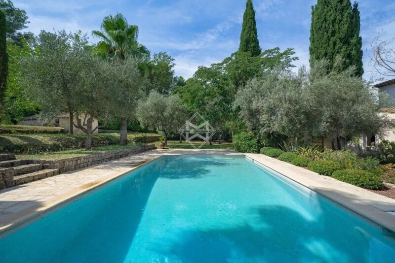 Nestled in a lush green setting, this charming Provençal villa with bastide-style architecture embodies the charm and elegance of the South of France. Its spacious interior embraces the hallmarks of Provençal architecture, with terracotta floors, vaulted ceilings, and elements of plaster and stone, creating a warm and inviting atmosphere. The villa offers a total of 4 bedrooms, complemented by a large living area and a superb covered terrace extending from the kitchen—perfect for long, beautiful summer evenings. An independent building can be adapted as a gym, an office, or guest accommodation. The landscaped garden, a true oasis of tranquility, is a major asset of this villa.Olive trees, palm trees, cypress trees, and various types of bushes blend perfectly with the architectural style of the property. Located just minutes from the picturesque village of Valbonne, known for its friendly atmosphere year-round, and close to international schools, this villa is a true haven of peace.