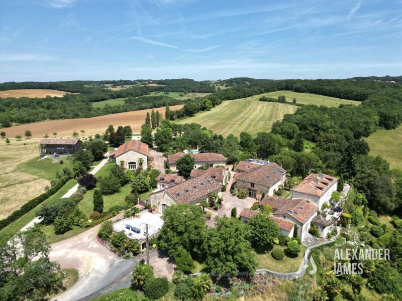 This prestigious property is an exceptional hamlet dating from the XIVth to the XIXth century, entirely renovated to offer high quality services, combining luxury, comfort and modernity. It is located in the heart of the Perigord Vert, only 3 hours from Paris, near Angoulême and Périgueux.Set on a 70-hectare plot of land, the property is surrounded by breathtaking scenery with 360-degree panoramic views of the surrounding nature. It consists of a main house of about 350m2, 5 stone gîtes and a sixth more recently built, ecological and energy efficient building, for a total of 20 rooms and two outdoor swimming pools.The main house has large volumes, offering a spacious and refined living environment. It includes a fully equipped kitchen, a dining room, a living room and 5 bedrooms, each with a private bathroom. It is finished to a high standard, with exposed beams, stone and parquet floors and original fireplaces, while offering modern facilities for optimum comfort.The 5 stone cottages are also tastefully decorated, offering comfortable and luxurious accommodation for your guests. Each cottage has a minimum of two bedrooms, a bathroom, a sitting area and a kitchen. The sixth building, built more recently, with a modern and sleek design, offers remarkable living comfort with 5 en suite bedrooms.The property's common areas are also impressive, with 2 large function rooms, one with superb acoustics for hosting concerts, a gym, a wellness room with sauna and steam room, an indoor pool with counter-current swimming, a massage room as well as a recording studio for music. Guests will enjoy an idyllic and relaxing setting, with top-of-the-line amenities for their comfort.This property is ideal for both B&B and catering activities, with a professionally equipped kitchen in one of the function rooms. It is also ideal for events such as seminars and weddings, with spaces large enough and well equipped to accommodate large groups.This prestigious property offers a unique and unforgettable experience, combining luxury, comfort and nature. It is ideal for those seeking an exceptional location in a region prized for its natural beauty, gastronomy and cultural heritage.