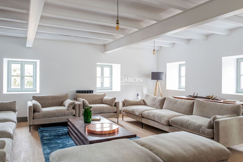 Once a food store for fishing campaigns to Iceland and an outbuilding of the Beauport Abbey, this former industrial building has been fully restored and converted into an exceptional property in the heart of the town of Paimpol. Located just a stone's throw from the marina and the town centre (all within walking distance), it presents a spacious interior spread over three levels. A magnificent and vast kitchen bathed in light with a high ceiling is separated from the large living room by a simple but delightful internal window. Six bedrooms in total, four bathrooms, large home office or relaxation room. Truly modern levels of comfort nestling in a period property dating back in part to the 16th century. Outside, there is a conservatory, several courtyards, a large wooden terrace and a large workshop with a beautiful glass roof. Swimming pool, artist's studio. The possibilities are endless. Unique.