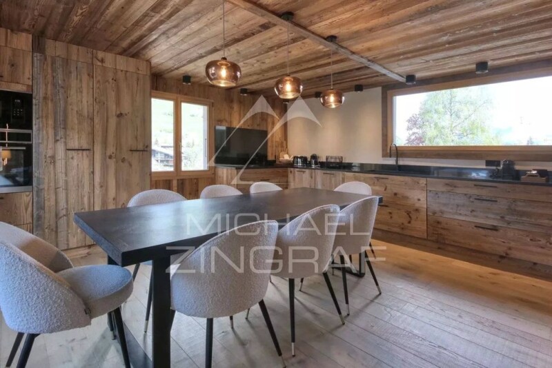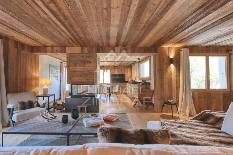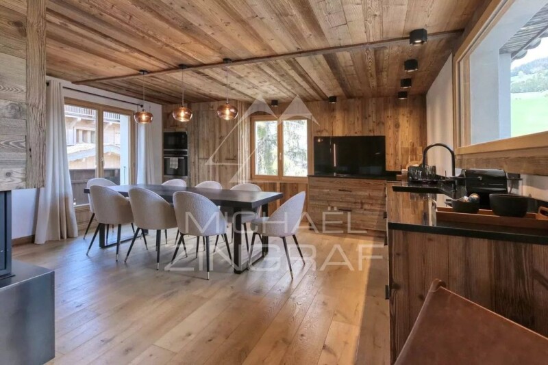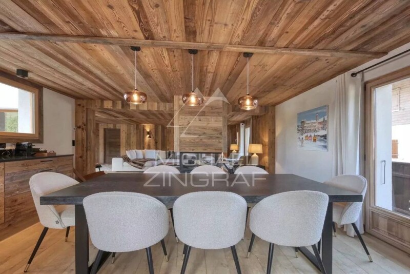 Michaël Zingraf Real Estate Megève offers this flat, ideally located less than 5 minutes' walk from the village centre, in a small co-ownership building with lift, in a quiet, sought-after residential area. This 127.80 m2 (loi Carrez) flat has been completely renovated with care and quality materials. It comprises an entrance hall with cupboards, leading to a large living room with lounge, dining room with closed fireplace and fitted kitchen, opening onto a south-west-facing balcony, and three en-suite bedrooms (two with shower rooms, one with bathroom, separate toilet). Two outdoor parking spaces and a ski locker complete this property. The property is subject to co-ownership status (13 lots, 5 of which are for residential use); No legal proceedings in progress. État des risques et pollution: réalisé (2023-09-19).